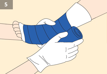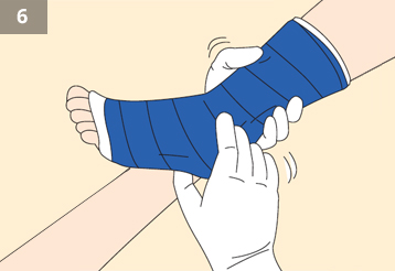 Bước 5: Cuốn băng bột bó theo nhiều lớp chồng lên nhau tại vùng cần cố định hay chỉnh hình. Cuốn 3-4 lớp